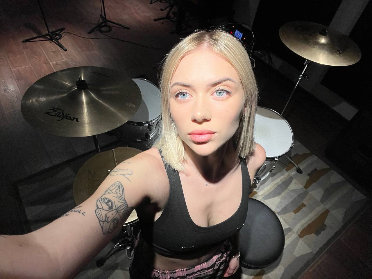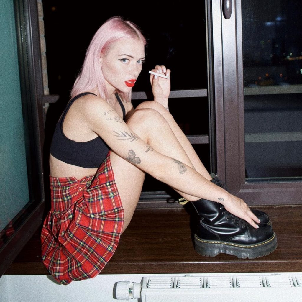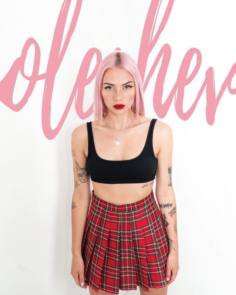 Алина Олешева родилась 27 мая 1999 года в Санкт-Петербурге. Она — барабанщица музыкальной группы «Кис-Кис». Отец Алины — музыкант, от которого ей передалась любовь к музыке. После окончания школы она поступила в музыкальный техникум, но не завершила обучение из-за занятий написанием песен и гастролями.