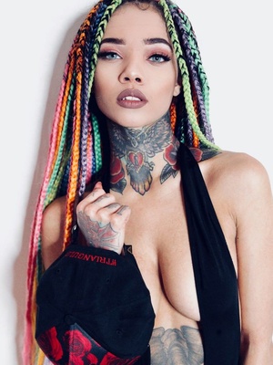 Gena Tew обладает запоминающейся внешностью с множеством татуировок и пирсингом. В интернете распространены её фотографии, включая откровенные, что привлекает внимание аудитории. Ее параметры — рост 163 см и вес 41 кг.